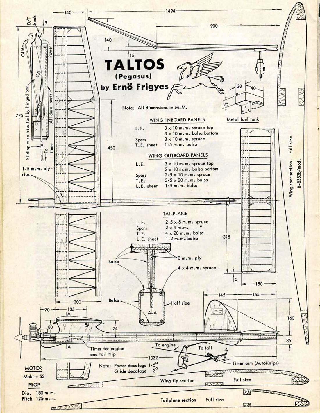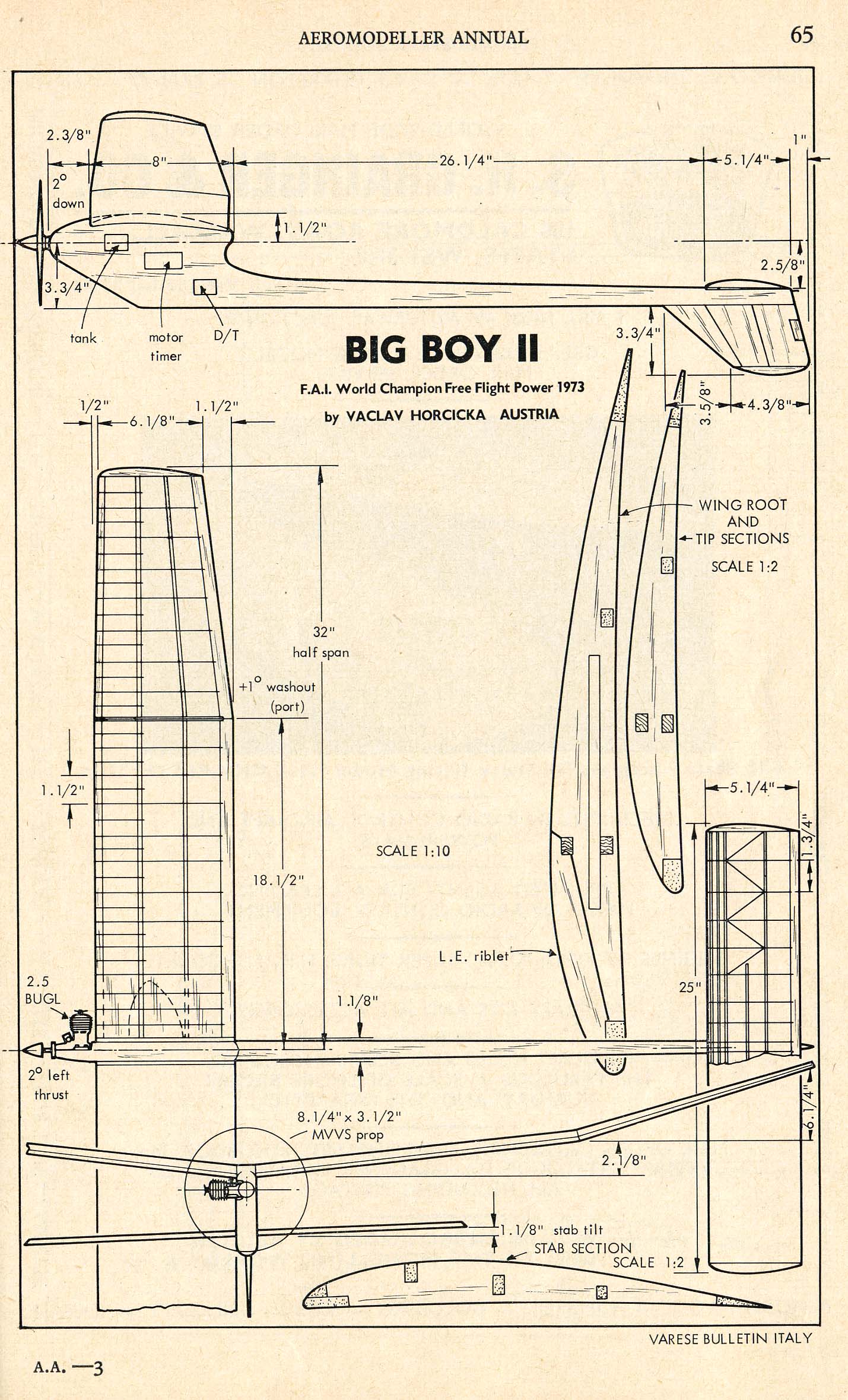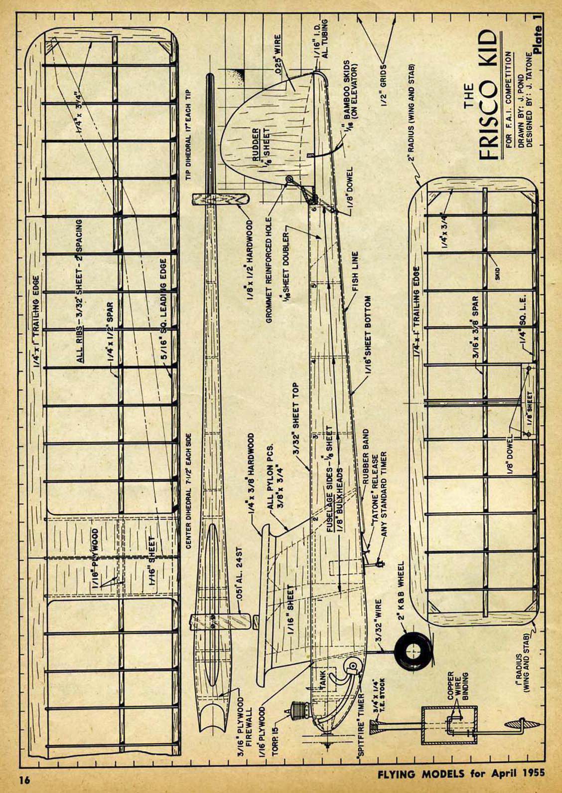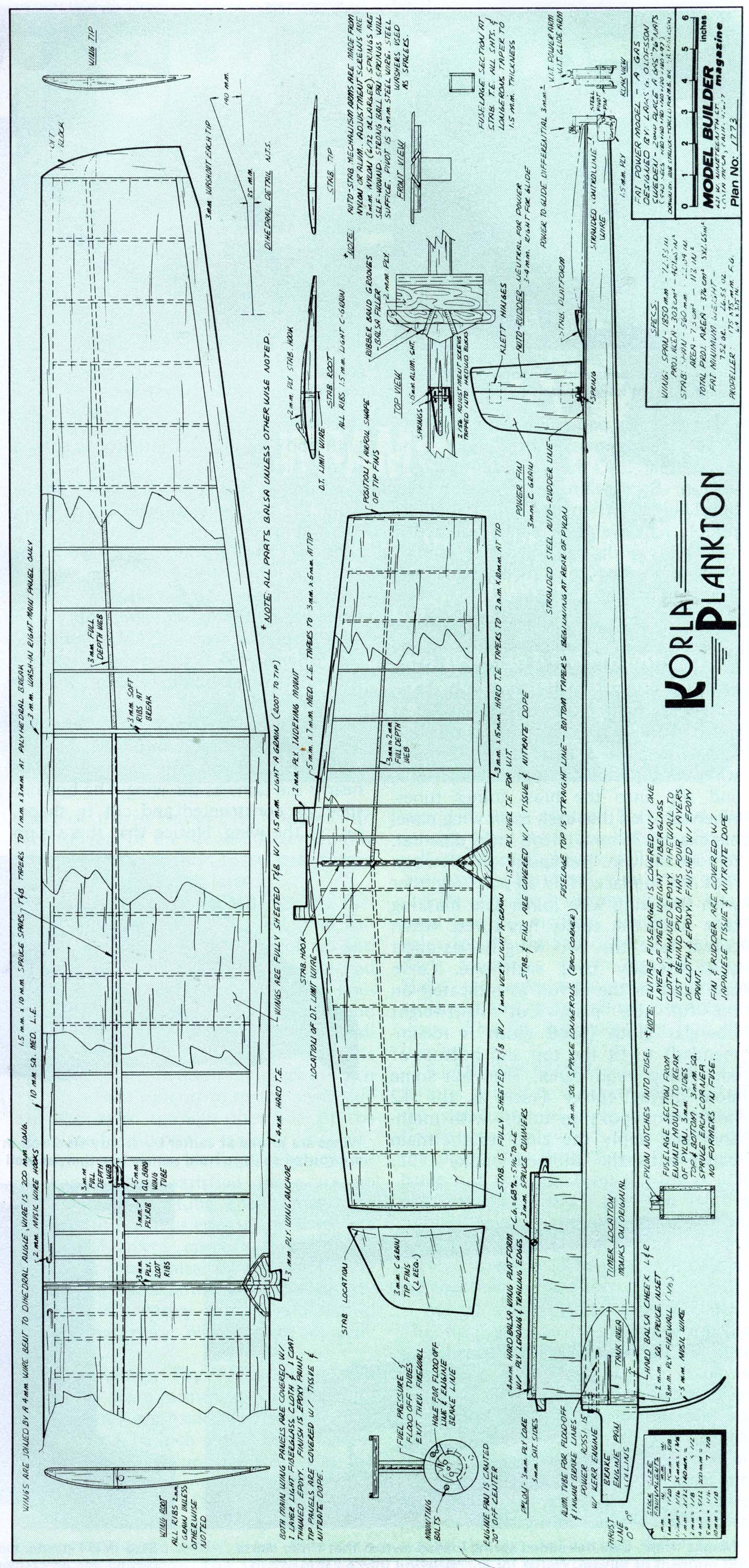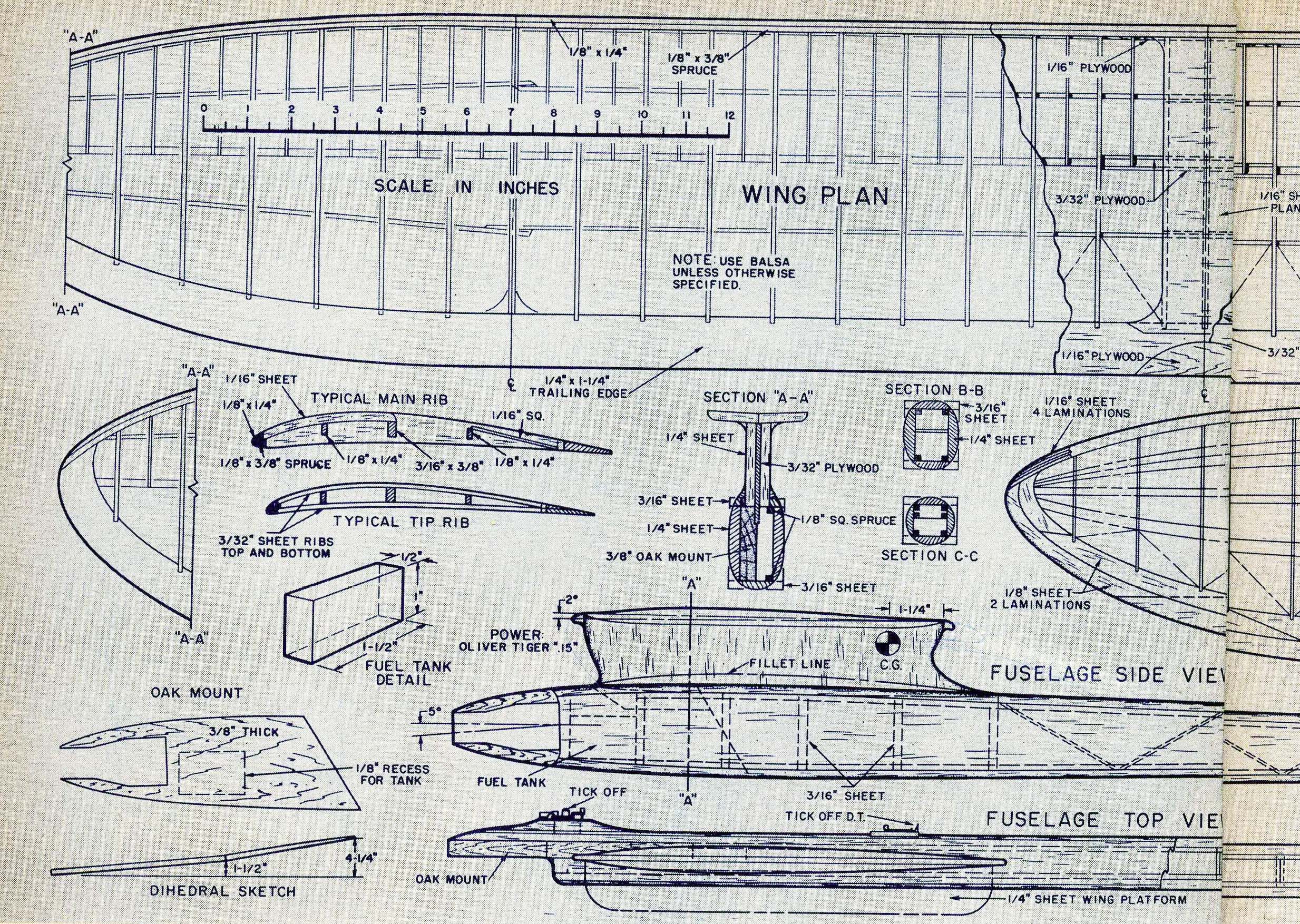 As per the rules above, the Vintage FAI Power event covers a time frame where there were distinct eras of rules involved. Below is a presentation of some of the models that we have information on to date, they are arranged by era. There are also many more models, from these Vintage Eras, in the "Models" section that have yet to be incorporated into this presentation. All of the plans and 3-views presented in this section are however also contained in the "Models" section. Eventually these presentations will evolve to the point where the all the models are presented in both this "Vintage FAI Power" section and in the more general "Models" area Era 1 - 1951-1955: 20 Second engine run with older lighter power and surface area loadings, a cross section rule and requirement to ROG. (see rules above for more details)